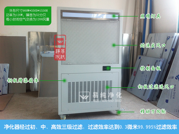 2、其風量為1200風量,每小時的空氣交換過濾量;