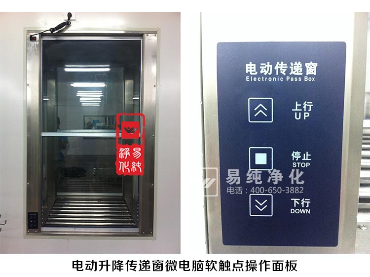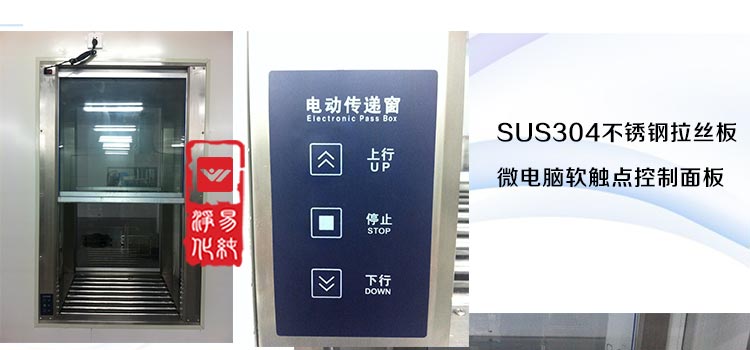 產品型號:YC-SJ-930技術說明:①外形尺寸:930(L)×100(W)×1660(H)mm;②通道尺寸:710(L)×100(W)×750(H)mm;③電源:220V,0.1Kw;④全不銹鋼;⑤采用鋼化玻璃視窗、透明度高、整潔美觀;⑥電動升降、按鈕控制、操作簡單方便;⑦作為物品的傳送通道,用于隔離不同的區域。