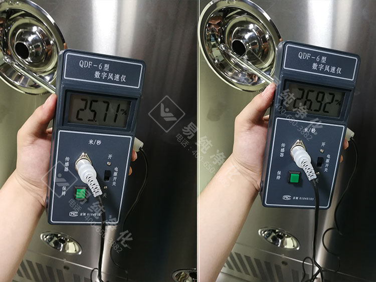 風(fēng)淋室風(fēng)速檢測>25m/s,大于行業(yè)規(guī)范要求18-22m/s要求