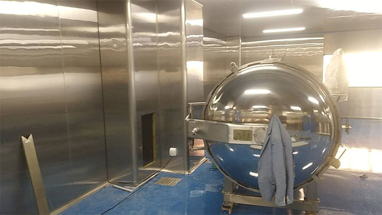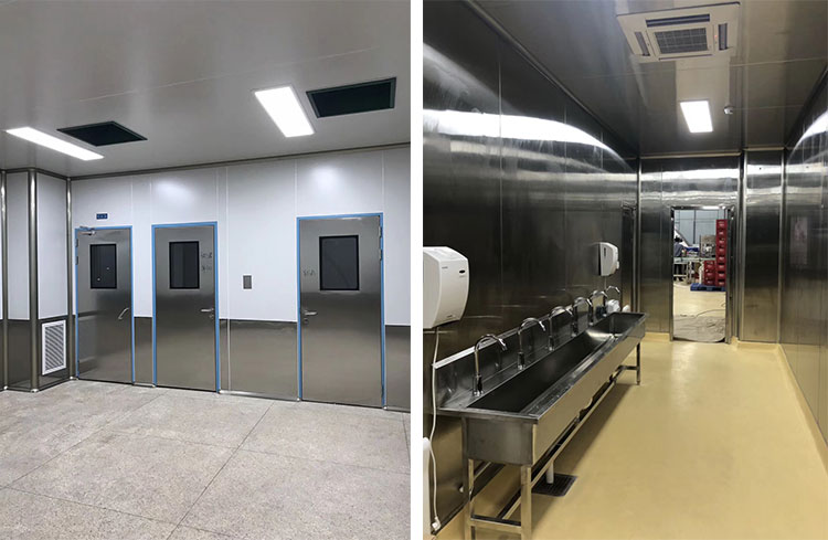 無錫易純凈化設備有限公司是一家集凈化工程、凈化設備為一體的一站式供應商,安徽綠帝食品有限公司作為阜陽市當地清真食品加工龍頭企業,除了對凈化系統要求是十萬等級外,對風淋室要求也很高,由于肉制品生產企業在生產過程中,高濕高鹽,所以需要采用304不銹鋼外殼材質的風淋室,還需配置PLC智能化控制系統,在顯示屏上顯示風淋運行狀態、雙門的互鎖狀態、風淋周期進度和延時開門狀態等。