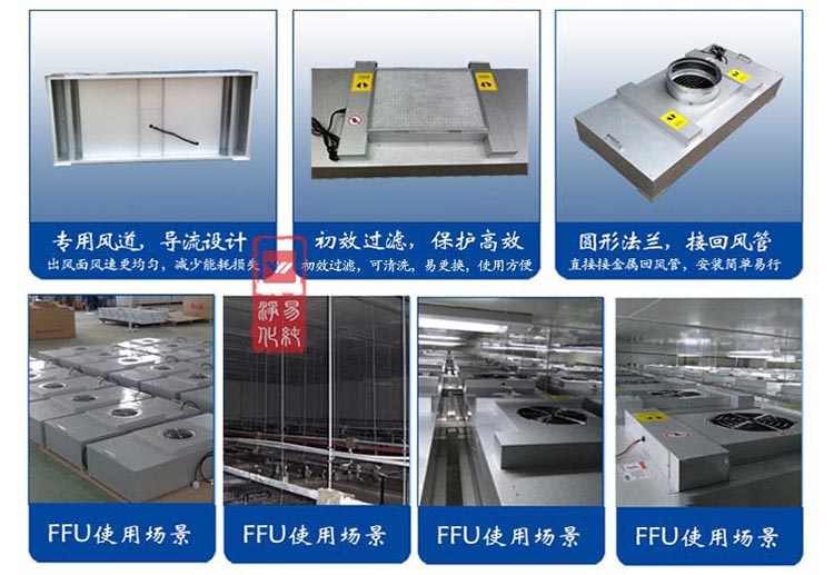 應用范圍:FFU可模塊化連接使用,使得FFU廣泛應用于無塵室、無塵操作臺、無塵生產線、組裝式無塵室和局部百級等應用場合。